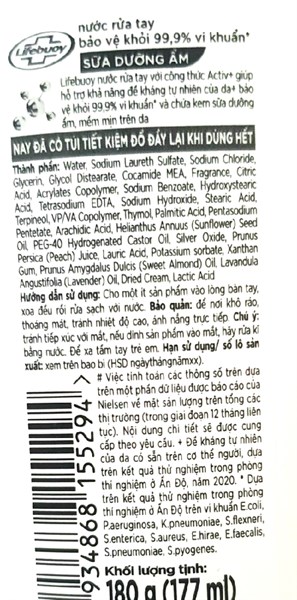 Nước rửa tay Lifebuoy 180g 'xanh' - chai