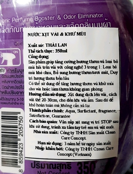 Nước Xịt Vải & Khử Mùi Haby tím Thái lan Chai 350ml - chai