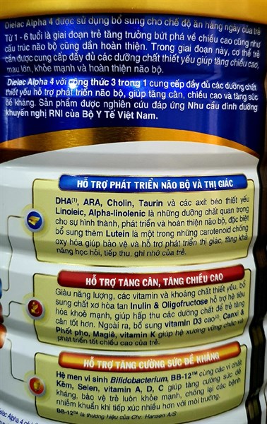 Sữa Bột dielac Alpha 900g số 4 ( từ 2-6 tuổi ) - lon