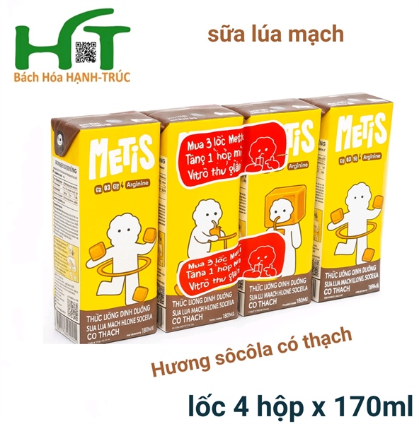 Sữa Lúa Mạch Metis Hương SôCôLa Có Thạch hộp 170ml - lốc 4 hộp
