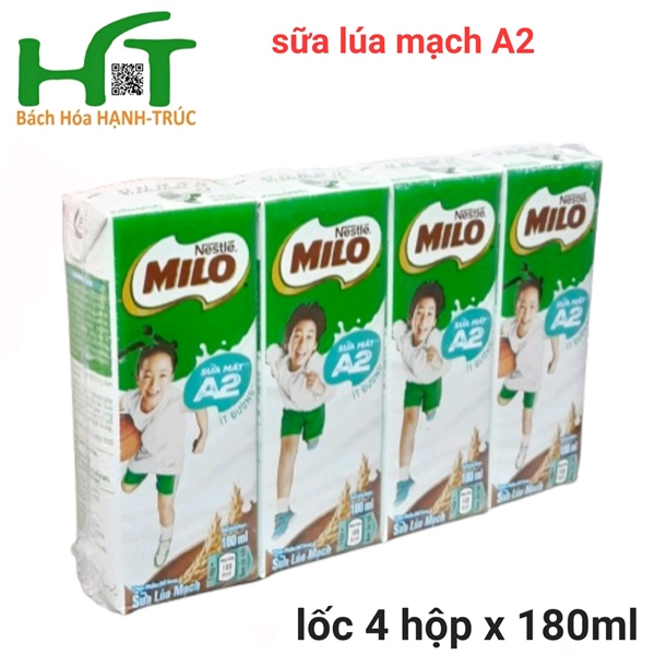 Sữa Lúa Mạch Milo A2 Lốc 4 hộp x 180ml - lốc