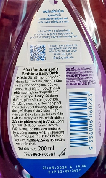 Sữa Tắm Gội JOHNSONS Tím Chai 200ml - chai