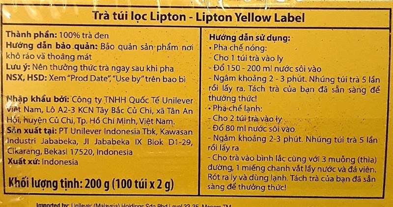 Trà Túi Lọc Lipton nhãn vàng 200g ( 100 x 2g ) - hộp