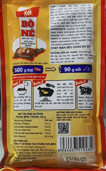 Xốt Bò Né Cholimex ( xốt bít tết )gói 90g Dùng Cho 500g Thịt - gói