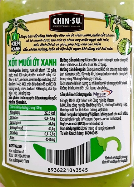 Xốt Muối ớt Xanh Chin-su Chai 200g - chai