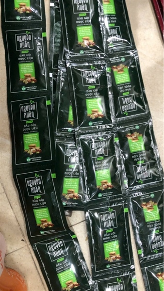 Dây 10 gói Dầu Gội Dược Liệu Nguyên Xuân xanh