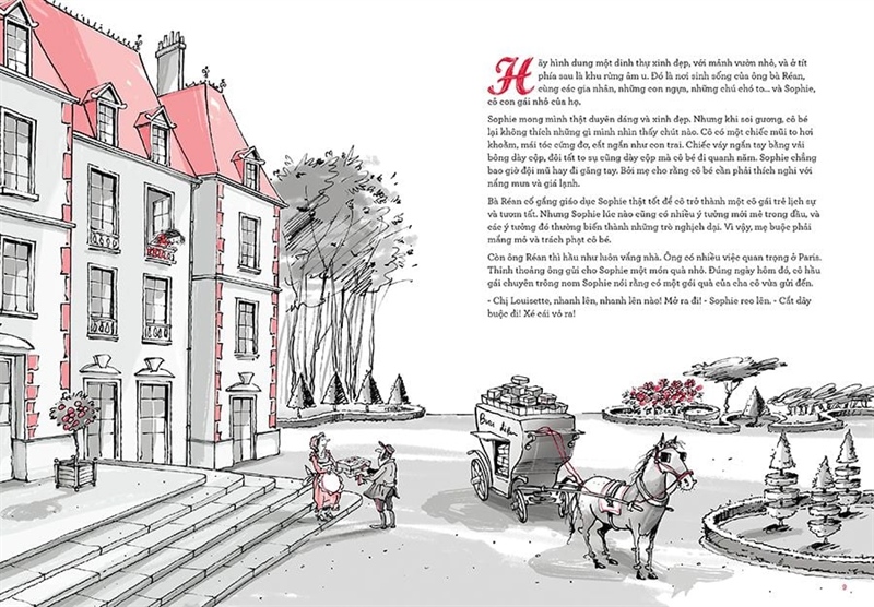Nỗi bất hạnh của Sophie, Những cô bé ngoan và Kì nghỉ – bộ ba tác phẩm kinh điển của Nữ Bá tước De Ségur được tập hợp lại trong cuốn sách mang tên Ba chuyện kể về dinh thự Fleurville. Ba câu chuyện được Jean-Pierre Kerloc’h kể lại một cách ngắn gọn và hóm hỉnh. Lời kể tinh nghịch kết hợp cùng tranh minh họa ấn tượng, giúp các nhân vật trong sách hiện lên thêm phần sống động và tươi mới.