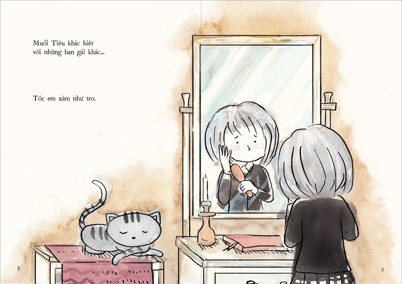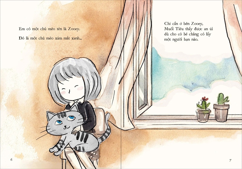 Muối Tiêu rất khác biệt. Tóc cô bé xám như tro, và em chỉ có độc một chú mèo xám Zooey bầu bạn. Ai ai cũng gọi em là “Muối Tiêu”.