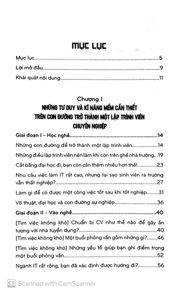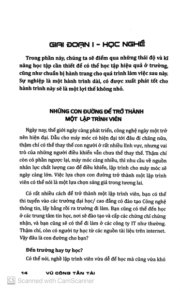 o Giai đoạn 3 – Phát triển trong nghề: Sau khi đã tìm được nơi làm việc, phần này sẽ trình bày những suy nghĩ và cách tư duy làm việc để giúp bạn có thể tiến bộ hơn trong sự nghiệp lập trình viên.