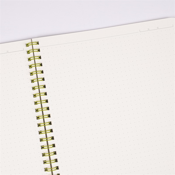 - Kết cấu lò xo kép ánh ngọc trai với bìa ivory in màu pastel dịu mát, được bảo vệ bởi bìa nhựa PP cả trước và sau dễ dàng lật, dở, gấp khi viết;