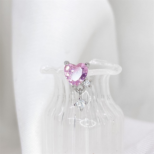Khuyên Orbital Fake xích Trái tim đá viền bi