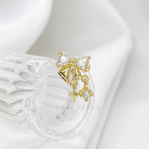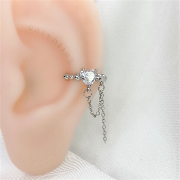 Khuyên Orbital Fake xích Trái tim đá viền bi