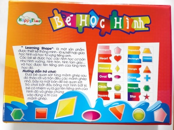 Learning Shape BÉ HỌC HÌNH Woody là sản phẩm thiết kế thông minh, là sự kết hợp giữa học hình và học từ vựng tiếng Anh, gồm nhiều mảnh ghép nhiều hình và màu sắc khác nhau, giúp bé học các hình học cơ bản như hình vuông, hình tròn, hình tam giác,… và học được tên tiếng Anh của từng hình học đó