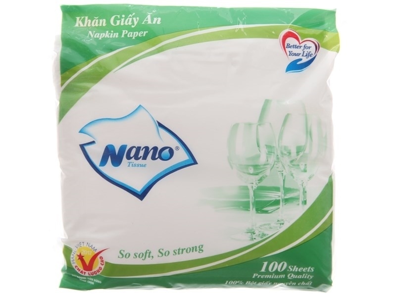 KHĂN GIẤY ĂN NANO 1 LỚP GÓI 100 TỜ