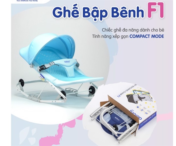 - Nhiều bé con thường hay nhõng nhẽo đòi mẹ bế bồng. Ghế bập bênh F1 giúp mẹ tập cho bé tính tự lập. Bé sẽ thoải mái tự nằm chơi ngoan trên ghế rồi dần chìm vào giấc ngủ. Mẹ có thêm thời gian để vừa làm việc khác, vừa trông nom bé.