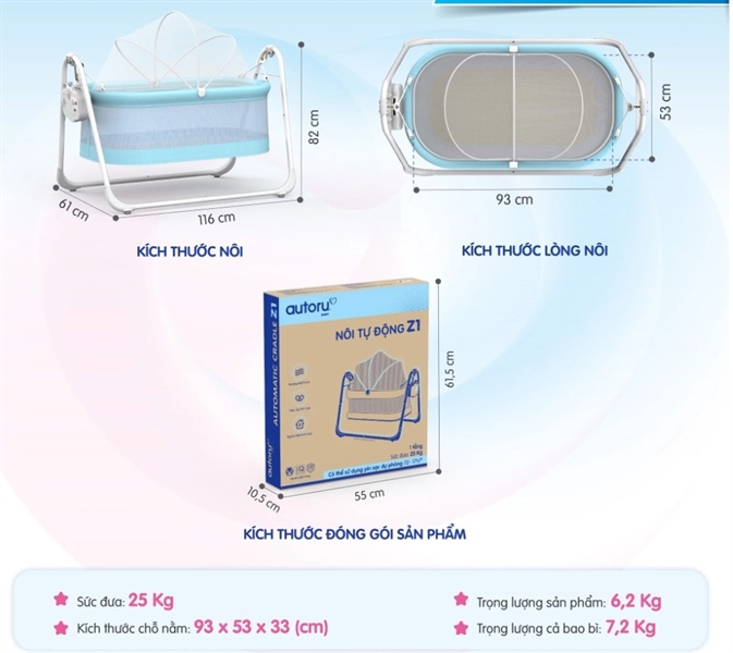 - Nôi tự động Z1 là một trong các sản phẩm nôi điện đưa tự động cải tiến mới nhất của Auoru, không chỉ mang đến cho bé giấc ngủ trọn vẹn, mà còn giảm tải những vất vả cho mẹ trong việc chăm sóc bé.