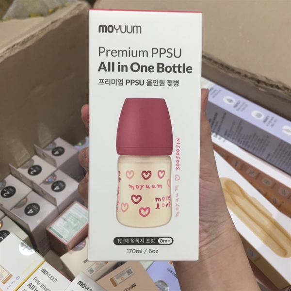 Bình sữa Moyuum Premium PPSU all in one bottle (kèm núm 0m+) - Trái tim đỏ - Bình 170ml - Nội địa Hàn