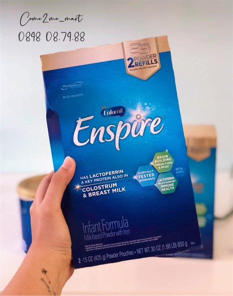 Sữa Bột Enfamil Enspire Infant Formula Mỹ Cho Bé Từ 0 - 12 Tháng Hộp Giấy Xanh 850g