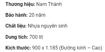 Bồn nhựa 750 lít đứng nhựa nam thành - cái