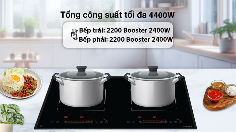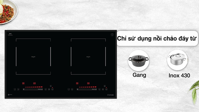 ![]() | • 2 vùng nấu cảm ứng từ công suất 2200 W booster đạt công suất 2400 W • Mặt kính “Ceramic” M - millennium, mài vát 4 cạnh bo viền nhôm Aluminium cao cấp • Sử dụng bụng nhựa thiết kế riêng biệt có dập nổi Logokhẳng định hàng chính hãng • Sử dụng 2 quạt sò tăng khả năng vận hàng êm ái • Công nghệ “Dual core inverter” siêu tiết kiệm năng lượng • Hệ thống điều khiển “Slider Control” cảm ứng điện cực, nhanh và chính xác • Hai bảng điều khiển riêng biệt • Chức năng Booster giúp nấu ăn nhanh • Chức năng tạm dừng “Stop and Go” khi đang nấu • Công nghệ khử nhiễu từ EMC bảo vệ các thiết bị điện xung quanh • Tính năng ủ ấm, rã đông linh hoạt • Tính năng sôi liu riu ở mức công suất thấp • Tính năng hẹn giờ trên mỗi vùng nấu • Tính năng tự nhận diện vùng nấu |