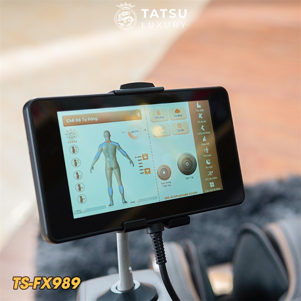 Ghế massage Tatsu FX989 được trang bị bảng điều khiển cảm ứng thông minh. Thiết kế nhỏ gọn, tiện lợi, hiển thị sắc nét, giúp người dùng sử dụng một cách đơn giản, hiệu quả, thuận tiện hơn đối với bất kỳ đối tượng người dùng nào, đặc biệt là với những người cao tuổi.