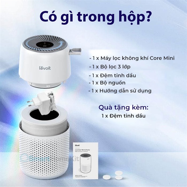 Máy lọc không khí Levoit Core Mini là một trong những dòng máy lọc không khí được bán chạy nhất của Levoit- một thương hiệu nổi tiếng đến từ Mỹ. Với thiết kế nhỏ gọn và tính năng lọc hiệu quả cho không gian có diện tích lên đến 17m2. Ngoài ra, máy còn hoạt động trơn tru, dịu êm cả đêm và ngày. Bởi độ ồn thấp nhờ công nghệ QuietKEAP không gây ảnh hưởng nhiều đến sinh hoạt của người dùng, bộ lọc khí với 3 lớp lọc đạt hiệu quả 99.97% bụi mịn PM0.3, mùi hôi và khói thuốc.