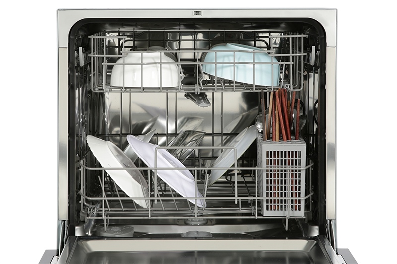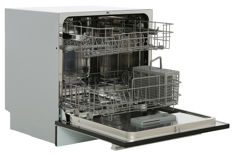 Là máy rửa chén mini nhưng máy vẫn được thiết kế với 2 khay rửa: khay dưới, khay trên và đi kèm theo giỏ đựng dao, muỗng, đũa.