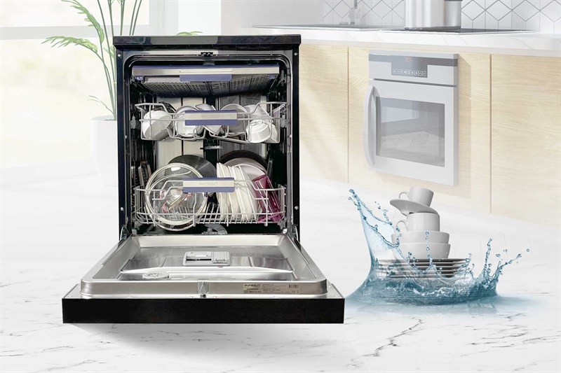 Được trang bị 3 khay chứa đa năng, cơ động + 1 giỏ để đũa, dao kéo. Dung tích chứa tới 15 bộ bát đĩa