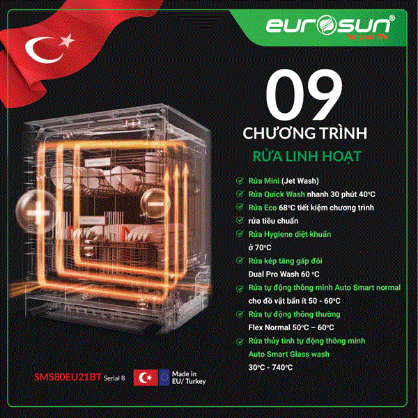 Máy rửa bát âm toàn phần EUROSUN SMS80EU21BT Serial 8
