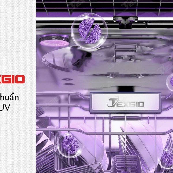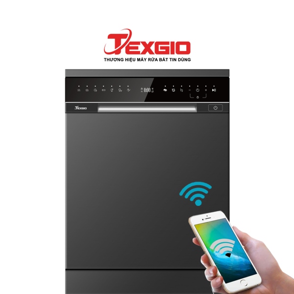 Texgio Dishwasher TGFPCM795B Smart - 14 Bộ WIFI, Sấy Khí Nóng, Diệt Khuẩn UV