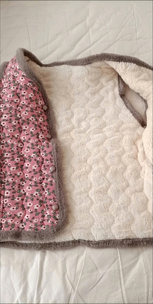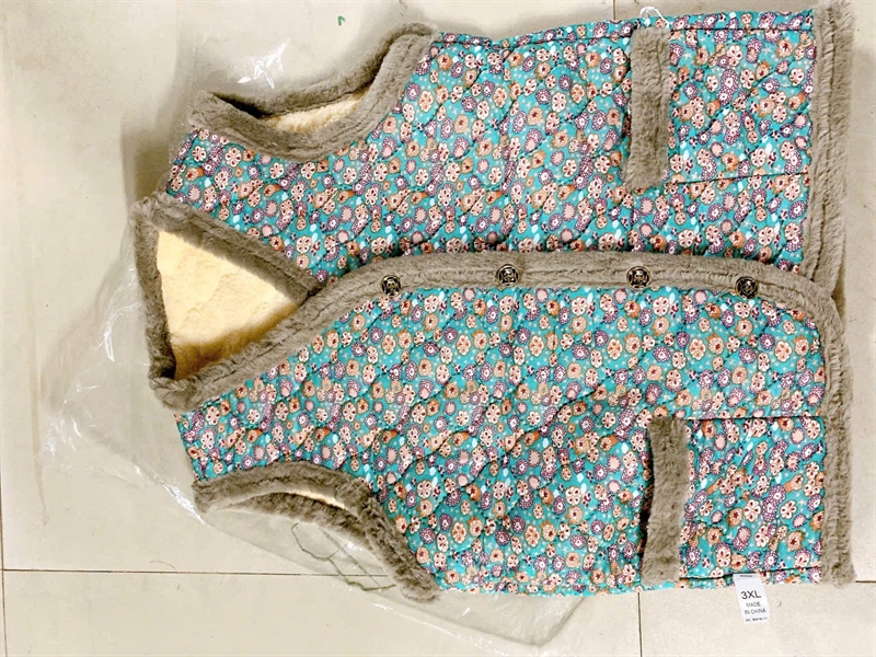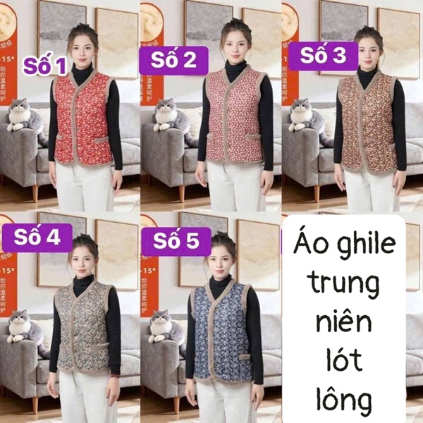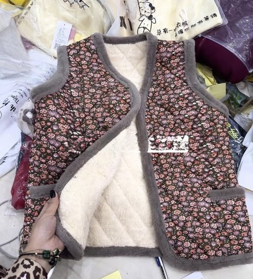 E thấy các bà thích mặc áo gile lắm . Áo bên trong lót lông cừu ấm cực, cổ chữ C viền lông nhìn sang hẳn luôn