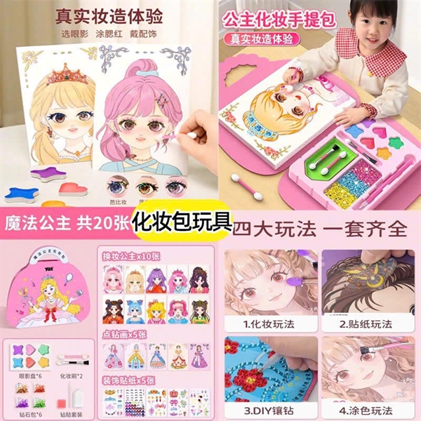 ‼️ ‼️ Đồ chơi túi xách trang điểm make up 4 in 1 kết hợp tô màu cắt dán đính đá, đồ chơi trang điểm thật cho bé