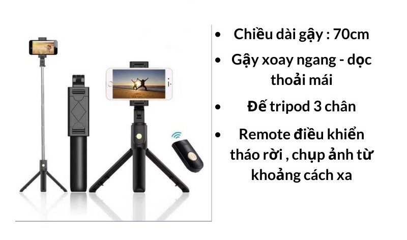 ✔️Có điều khiển để chụp ảnh từ xa. Gắn liền thân máy khi nào dùng thì rút ra ko lo làm mất