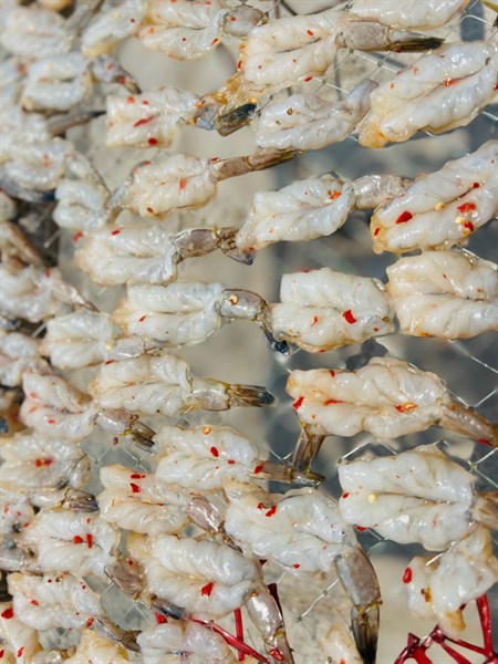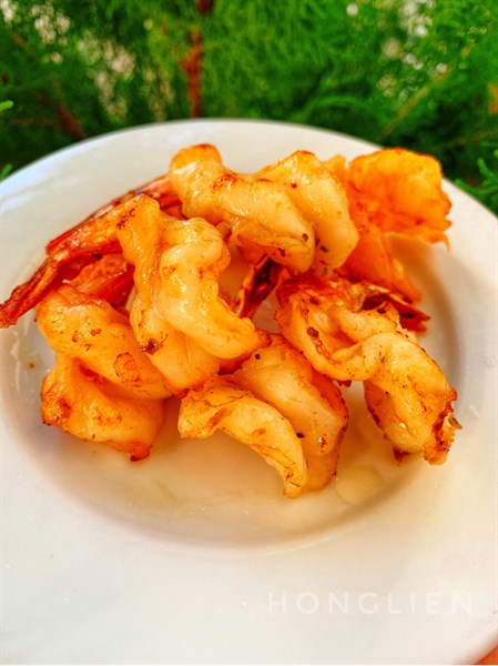 "Tôm dẻo" là sản phẩm được yêu thích nhất tại Hồng Liên. Để tạo ra được sản phẩm này, cần rất nhiều công đoạn tỉ mỉ. Tôm được chế biến từ loại tôm thẻ tươi sống, sau đó được ướp với muối ớt gia vị vừa phải. Hòa quyện với vị ngọt tự nhiên từ tôm, tạo nên một món ăn rất riêng và rất đặc biệt.