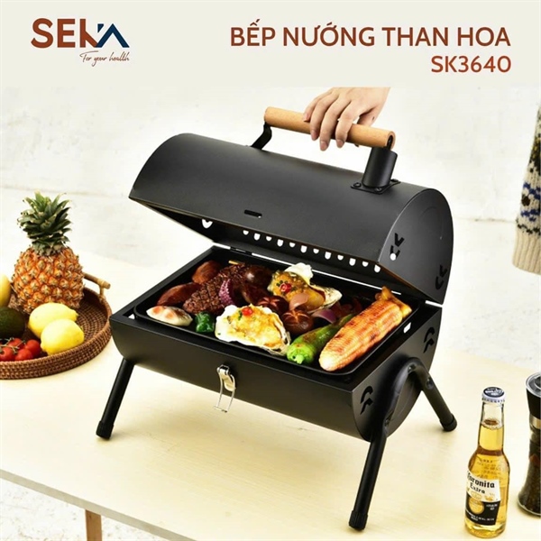 Bếp Nướng Than Hoa BBQ Ngoài Trời Cao Cấp Kèm Vỉ Nướng Inox