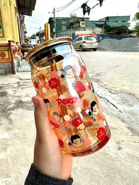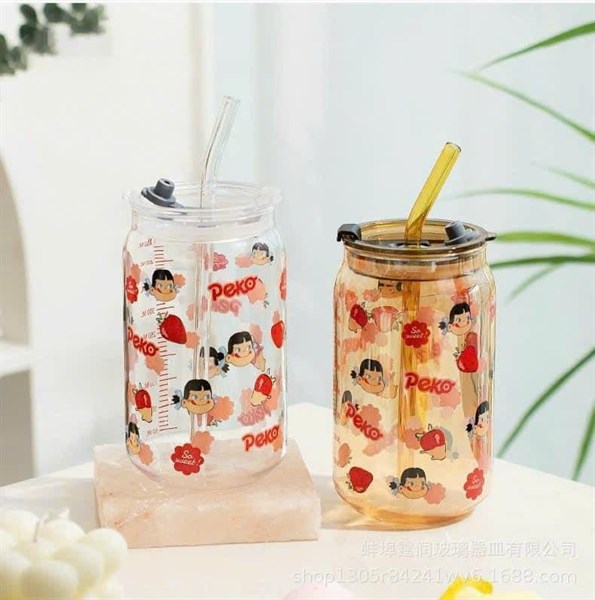 Cốc Thuỷ Tinh Chia Vạch + Ống Hút PeKo 450ml