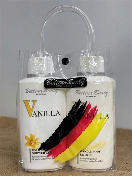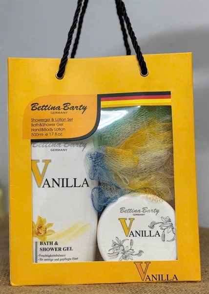 Sét quà tặng sữa Betina Vanilla ( 1 chai tắm 500ml/ 1 dưỡng 300ml. 1 bông tắm)