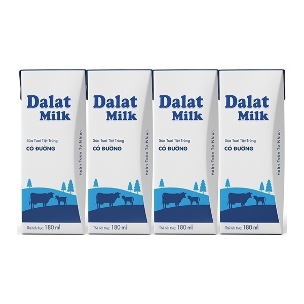 DLM - Sữa Tươi Tiệt Trùng Đà Lạt Milk** CÓ ĐƯỜNG** LỐC 4 x 180ml