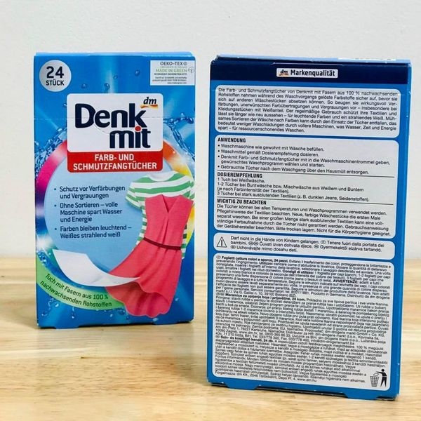 Nhưng chỉ cần sử dụng 1 tờ hút màu Denkmit sẽ giúp chị em thoải mái giặt các đồ với nhau mà không lo bị loang màu.