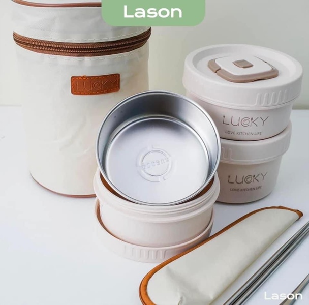 - Hộp cơm giữ nhiệt Lucky 3 ngăn