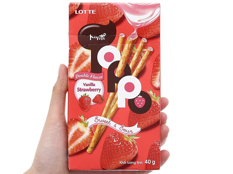 BÁNH QUE TOPPO DOUBLE FLAVOR VANILLA STRAWBERRY LOTTE 40G
