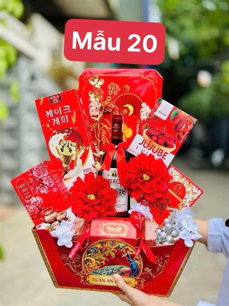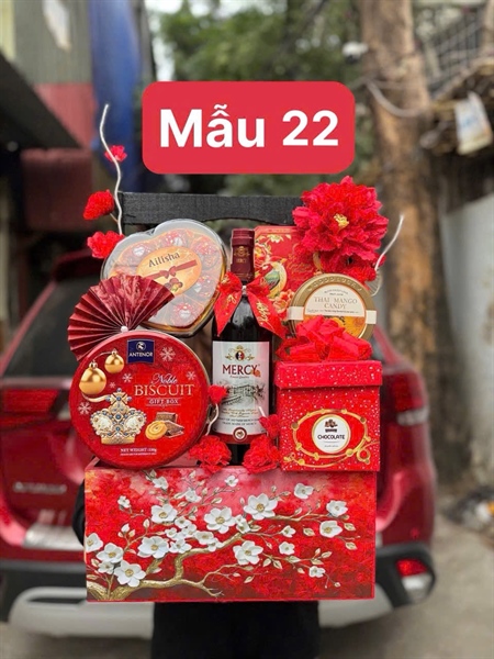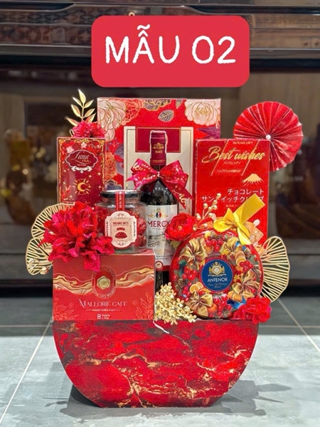 GIỎ QUÀ TẾT : Mẫu 22 -Giỏ thuyền có rượu MERCY