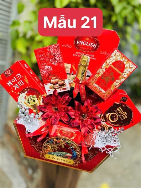 GIỎ QUÀ TẾT : MẪU 03- Giỏ thuyền có bánh WAFFTE