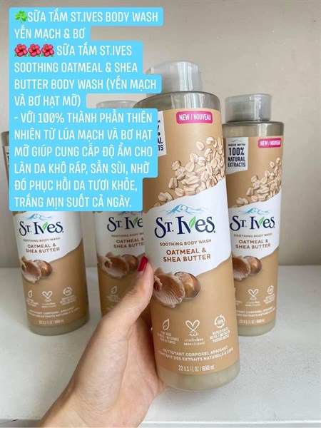 Sữa Tắm St.Ives Yến Mạch & Bơ Hạt Mỡ Dưỡng Ẩm Da 650ml Oatmeal & Shea Butter Soothing Body Wash (New Packaging)