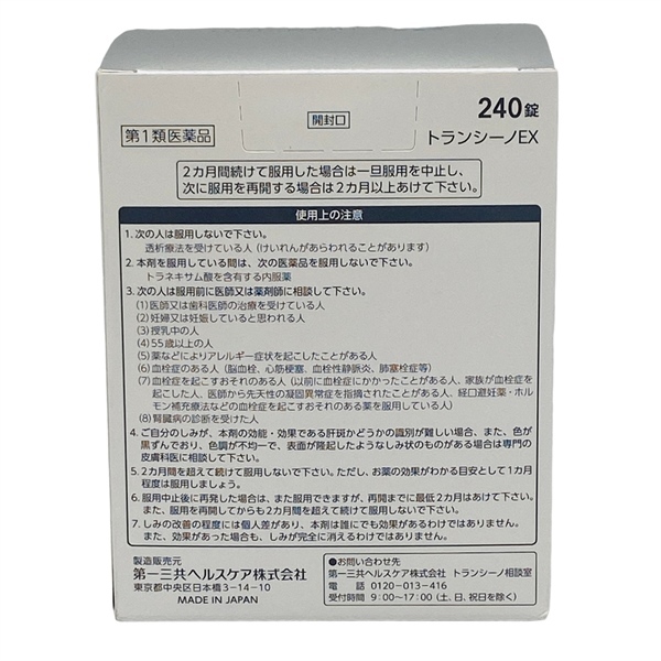 Thông tin sản phẩm: Viên Uống Trị Nám Sạm Da Transino EX 240 v
