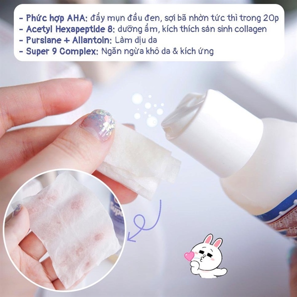 và làm đẹp chất lượng, ứng dụng công nghệ mỹ phẩm sinh học. Medi Peel Extra Super 9+ sử dụng sau bước làm sạch, có tác dụng loại bỏ mụn đầu đen, cải thiện tình trạng lỗ chân lông to, giữ ẩm cho da, điều tiết bã nhờn, hạn chế nguyên nhân hình thành mụn và đồng thời dưỡng da tươi sáng. Sản phẩm có khả năng lấy nhân mụn dễ dàng sau 15 phút, mà không gây đau rát hay để lại sẹo.