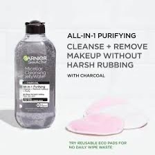 Garnier SkinActive Skin Clear Micellar Jelly Cleansing Water All-in-1 với than hoạt tính làm sạch sâu cho da. Nhờ các phân tử micelle đặc biệt, lớp trang điểm có thể dễ dàng được loại bỏ và các hạt bụi bẩn bị thu hút bởi nam châm.