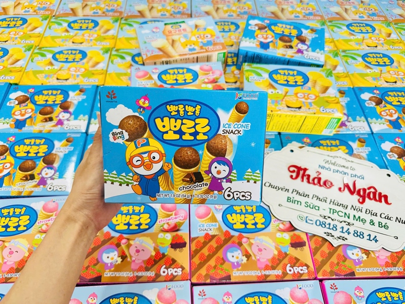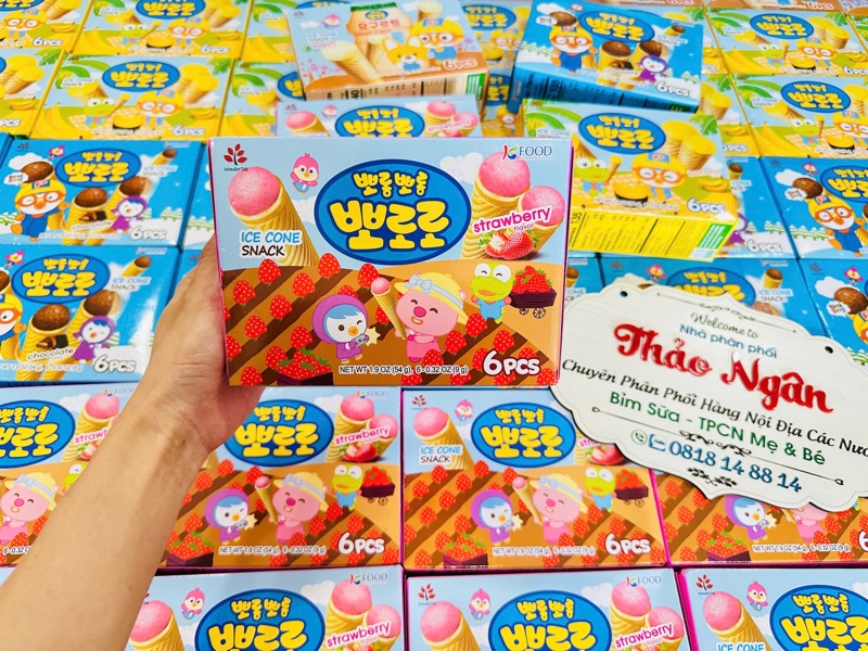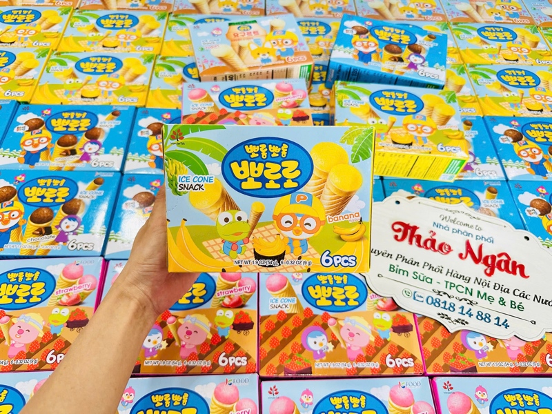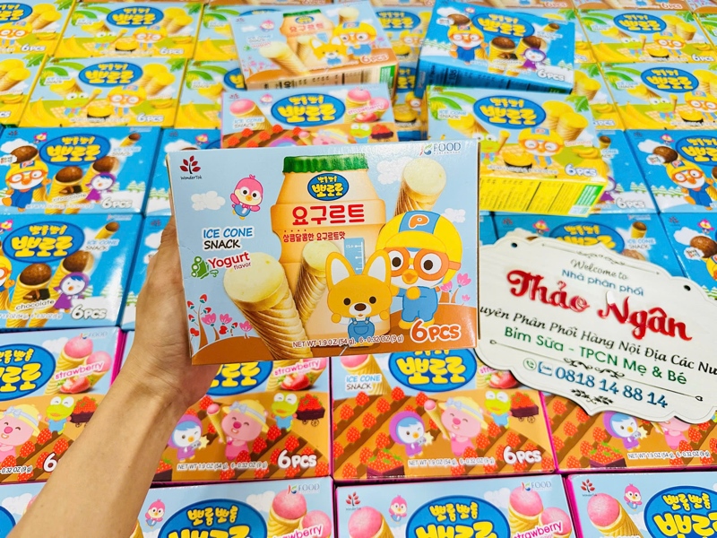 (4 vị) Bánh kem ốc quế Pororo Basraq Hàn 54g (T20) (Tem+VAT)