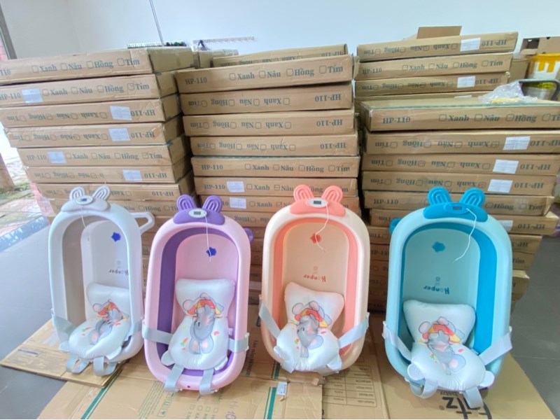 (4 màu) Chậu tắm gấp gọn báo nhiệt Honper hình thỏ