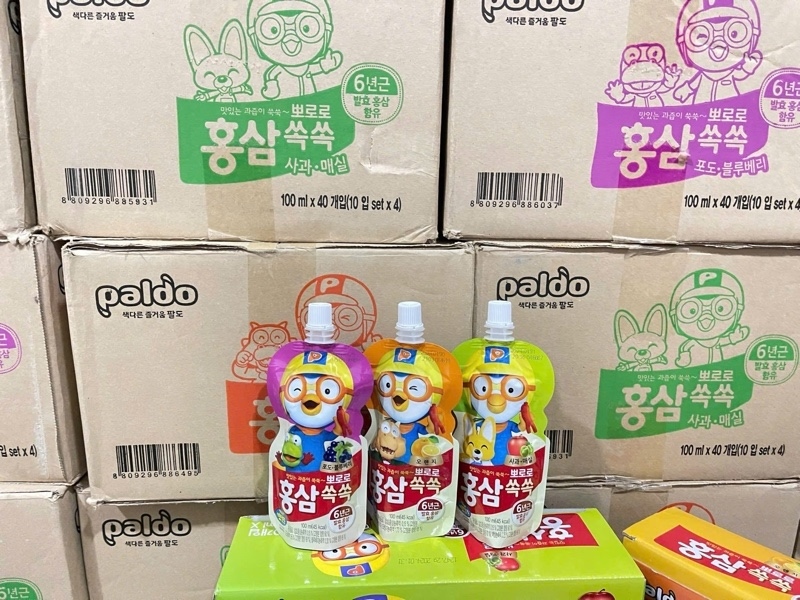 (3 vị) (TUÝP) Thùng 40 Hồng sâm Pororo Hàn 100ml (Tem+VAT)